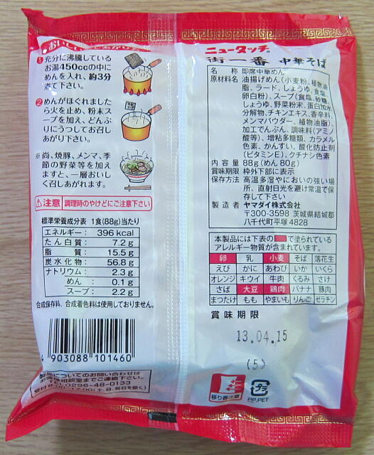 | ★トップ★ 「街一番 中華そば しょう油味(ニュータッチ)」の感想 ◆登録日:2012年11月10日 絞り込み→ インスタントラーメン(袋) | 絞り込まない | カテ一覧 |