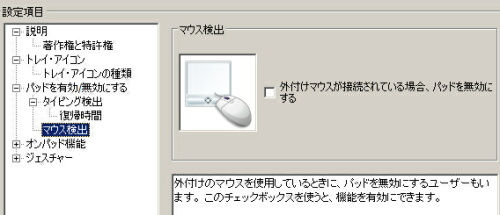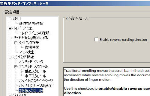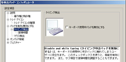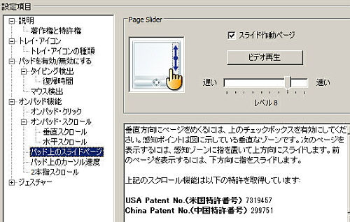 iiyama 11P1000-C-TRMをしばらく使ってみて始めて気が付いたのですが、タッチパッドが敏感過ぎる感じがありますね。タッチパッド面に指が触れる前に検出してしまうので、一本指で操作しているつもりが、隣の指も誤認識されて、マウスカーソルの動きがおかしくなる(動かなくなったり、突然ジャンプしてしまったりする)事があります。そして残念なことに、タッチパッドの感度設定も出来ない。ここが唯一残念なところかも。 ところで、本機に採用されているタッチパッドは、Sentelicというあまり有名ではないメーカーのものです。 ![]() …で、ドライバの機能は、正直、大手のSynapticsやELANと比べると、それほど充実しているわけではないです。なので、どんな設定が出来てどんな設定が出来ないのか、かいつまんで記録しておきます。 機能一覧その1 ![]() 機能一覧その2。ジェスチャー機能の中身。 ![]() タイピング検出機能あり ![]() マウス検出機能もあり ![]() Page Slider機能もあり。 ![]() ※これは、より一般的な用語を使えば、「バーチャルスクロール機能」です。ただし、水平スクロールが出来ませんし、バーチャルスクロールの領域の大きさを指定することも出来ませんね。自分は2本指スクロールしか使わないのでどうでもいい問題ですけど。 スクロール方向を逆転する設定も可能 ![]() ※ただし、これは2本指スクロール時だけに有効です。つまり、Page Slider機能でのスクロール方向には影響しません。 各種ジェスチャー機能にもあります(2本指操作のみ) ![]() ※2本指操作にしか対応していませんし、ジェスチャーと機能割当てを変更することも出来ませんが、個人的にはこれで十分ですね。詳しくは解説しませんが、スクロール(上下左右)、ズーム(拡大/縮小)、回転(右/左)が可能で、各項目ごとに有効・無効を指定できます。 |