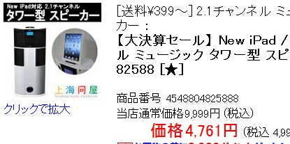 2013/04/05現在、ショップ・オブ・ザ・イヤー受賞記念セールを行なっていて、通常価格17,999円のところ、9,899円とのこと。すごく安くなってます。買うなら今!(ホントかよ)