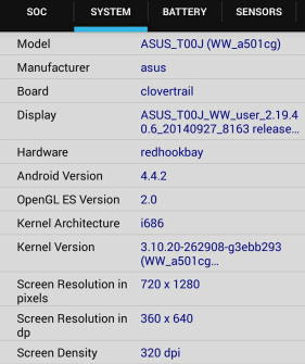 【Zenfone 5を実機レビューしてみて気がついたこと】 このページは、前編である、「ZenFone 5[A501CG]をチェック」の後編となっております。実機を借りて一定期間使ってみましたので、より詳細な情報を記録しておきます。 【注意】ただし、今回レビューに用いたZenfone 5は、Androidのバージョンが4.4.2となっていました。 こんな感じ 少なくとも初期のモデルは、Android 4.3だったはずなので、その後、4.4で出荷されるように切り替わったのか、もしくは、もともと4.3だったものに対してユーザーがシステムアップデートをかけたのかもしれません。つまり、もしかしたら購入直後の本来のシステムの状況ではないのかもしれませんので、画面等が食い違っているかもしれません。その点ご注意ください。また、基本的なレビューは「前編」を先にご覧ください。そちらを読まずにいきなりこちらを読んでしまうと、内容が細かすぎて伝わらない可能性ありですw ■■■■■■【目次】■■■■■■ 【カメラ消音可能、というか常に消音なのだが?】 【テザリングOKではあるが、一部変な動きが】 【Moves動作せず】 【カメラの一発起動が動作不良】 【電波受信能力は全く問題なしでした】 【CPU-Zの結果報告】 【カメラは消音可能、というか常に消音なのだが?】 カメラの設定に、カメラサウンドのON/OFF設定がありますので、カメラの消音可能。 ![]() …というか、実は逆に、カメラサウンドを出すことができないです。何故かここの設定をONにしてもシャッター音が出ません。もちろん、マナーモードにしていたとかいうオチではないです。 自分は、普段は常にシャッター音を消しているので、これで問題ないのではありますが、「シャッター音が無いと、きちんとシャッターが切れたことを確認しにくいので不安」という方もいらっしゃるでしょうからね。これはこれで問題。原因がよく分からず。もしかしたら、Android 4.3→4.4にアップデートした際の不具合? 【テザリングOKではあるが、一部変な動きが】 テザリングは、USBテザリング/Wi-Fiテザリング/Bluetoothテザリングとも可能のようです。 試しにWi-Fiテザリングをやってみましたが、一応動作OKです。ただし、Wi-FiのAPに接続したユーザーをモニターすることができませんね? このように、何故かAPに接続したユーザーが見れない(No userのままである) ![]() ですが実際は、接続した端末がきちんとネットを利用できているので、純粋に表示上の問題だけだと思われます。ちなみに、接続端末数の上限を設定する事はできません。 【Moves動作せず】 残念ながら、バックグラウンドでのトラッキング不可とのこと ![]() なので、こんな感じに途切れ途切れになってしまいます ![]() 【カメラの一発起動が動作不良】 こんな感じです 【電波受信能力は全く問題なしでした】2014/11/06 何かと疑問視していたAtomなスマホの電波受信能力なのですが、少なくともZenFone5に関しては全く問題ありませんでしたね。 試しに、私物のLG G3とZenfone 5を一緒に持ち歩いて、両者の電波の受け方を比べてみたのですが、特別どちらが優れているとか劣っているとかは感じませんでしたね。 もちろん、非常に限られた期間と非常に限られた地域で試しただけなので、あまり参考にはなりませんが、自分的には特別Atomだからといって目に見えて切れやすくなるとか、そういう事はなさそうだな、という感触は十分受けました。 最近は、価格的にはむしろAtomスマホの方が有利な気さえする今日このごろですが、完成度に関してもARM系に対してひけを取らなくなってきたのではないかと! 【CPU-Zの結果報告】 SOCタブ。Atom Z2560搭載。 ![]() ![]() SYSTEMタブ。メモリ2GB、ストレージ4GB。メモリは十分ありますが、ストレージがちょっと少なめ。 ![]() ![]() BATTERYタブ ![]() SENSORSタブ。非常にシンプルですが、主なものはすべて装備しています。気圧計やpedometerや指紋センサー等は付いていませんが、普通はこれで必要にして十分でしょう。 ![]() |
