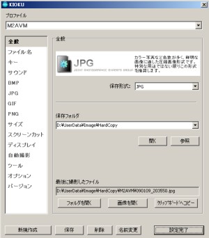 ちなみに、以前使っていた「Kazuasa's HardCopy」はBMPのみ対応だったので、ファイルが大きいことを承知でずっとBMPで保存していたのですが、「KIOKU」にしてやっと圧縮画像形式で記録できるようになりました。(^^;
