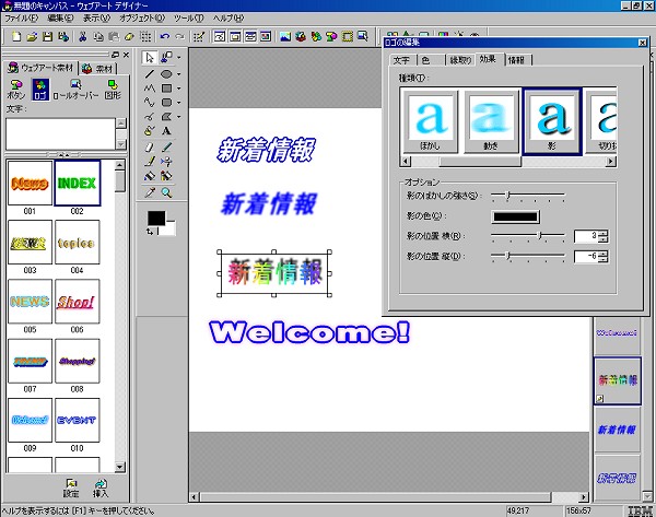 ウェブアートデザイナーと同様、何らかの方法でテキストや効果の設定を保存しておけると便利なんですがね〜。