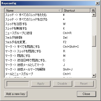 ↓試しに、keyconfig.xpi(キーアサインを変更するExtension)を入れてみました。(FirefoxとThunderbirdで同じExtensionが使えるので手間なくていいですね)