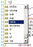 ・対になるタグは強調表示してくれる。(この例では<FONT>タグ)