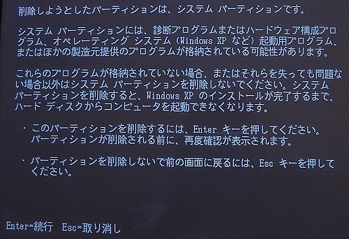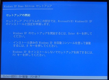 WindowsXPのセットアップを起動すると、以下のような画面が出てきます。