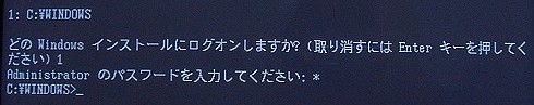 ※「どのWindowsインストールにログオンしますか?」という、明らかに誤訳っぽい日本語はともかく(^^;、ここで1を入力します。
