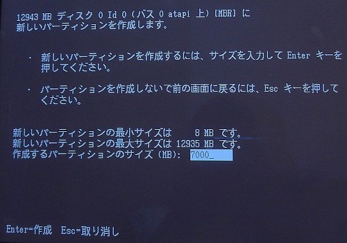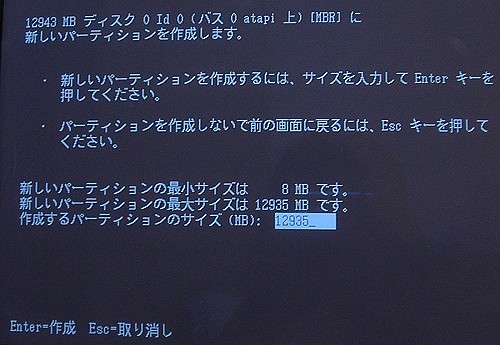 デフォルトの値として、最大値(このディスクの場合12935)があらかじめ入っていますが、今回は、サイズを変更します。
