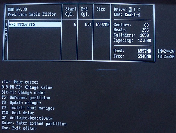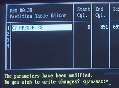 補足:今回の作業では、初めからパーティションの属性が"HPFS/NTFS"になっているので、パーティションをアクティブにするだけの作業でした。