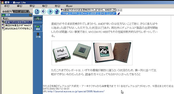 そういう意味で、あくまでモトネタを記録しておくためのソフトであり、モトネタを組み合わせて新しいページやまとめページを作ったりといった用途のためには、今一歩という感じがします。