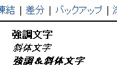 Wiki文法の詳しい説明は割愛しますが、例えば、文字の強調/斜体等の修飾は、以下のようになります。(PukiWikiの場合)