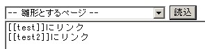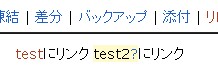 「test」はサイト内に存在するページなので、ハイパーリンクが自動生成され、「test2」はサイト内にないので、"?"が付き、黄色いバックで表示されます。